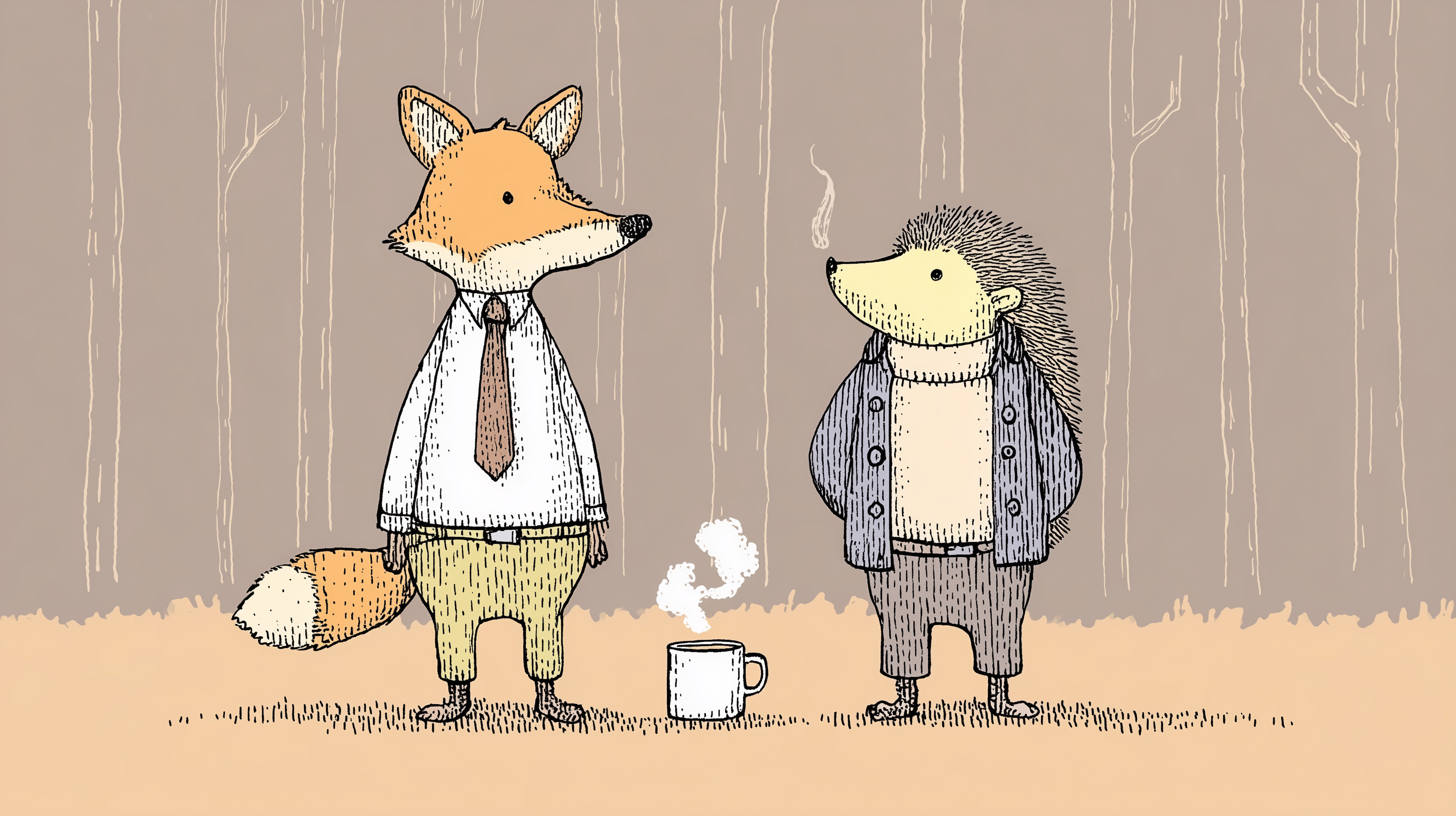 The fox is a cunning creature, capable of inventing a million complicated strategies to attack the hedgehog. Day after day, the fox circles around the hedgehog’s burrow, waiting for the right moment to pounce. Fast, agile, beautiful, and sly, the fox seems destined to win. The hedgehog is clumsy and looks like a mix between a porcupine and an armadillo. All day long he runs around the forest looking for something to eat.